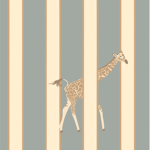 Little Cabari presents Gigi, a wallpaper where stripes open onto a stylized savannah scene. Between the vertical lines, slender giraffes sneak in with silent grace. The pattern combines graphic rigor and animal lightness. It breathes a dreamlike air into the wall universe, and invites a subtle reverie, suspended between order and freedom.