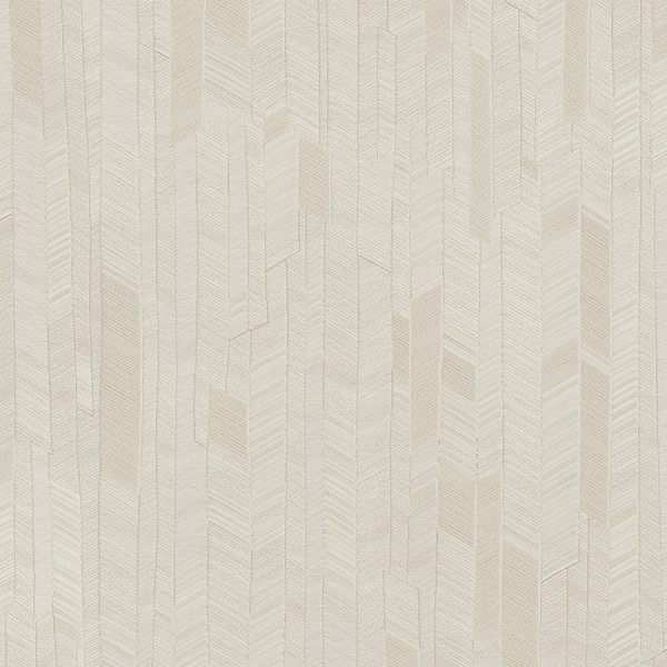 Rafia Plain is a geometric wallpaper featuring delicate stripes that form a regular herringbone pattern. The precise pattern structures the space in a measured way and reveals a play of subtly oriented lines. Its textile-like appearance evokes the weave of a natural fiber, integrating the design into the material. This wall covering creates a understated and harmonious presence, true to the Missoni Home aesthetic.